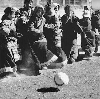 車剛 攝 西藏攝影家協會 2009年4月,西藏自治區雙湖特別區多瑪小學的學生在踢足球。 |